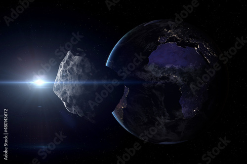 The watermark will not be included on Canvas Print.: Asteroid near planet earth - elements of this image furnished by nasa -