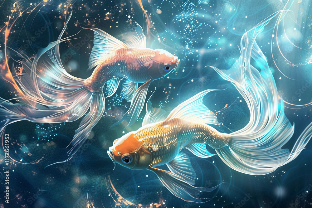 The watermark will not be included on Canvas Print.: Astrological abstract composition with concept of pisces zodiac sign symbol, abstract vivid composit