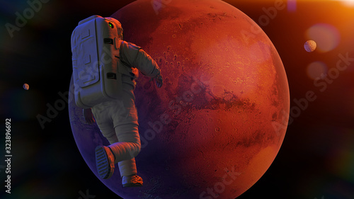 Canvas Prints astronaut during a space walk in orbit of mars, the red planet