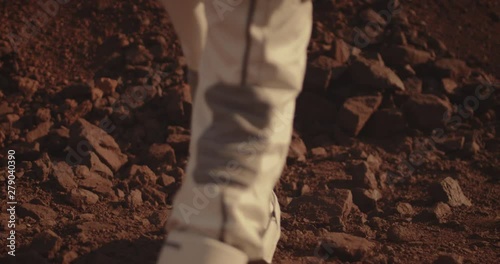 The watermark will not be included on Canvas Print.: Astronaut examining rock on mars
