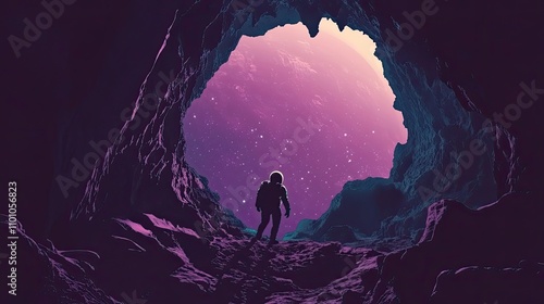 Canvas Print : Astronaut exploring alien cave planet landscape