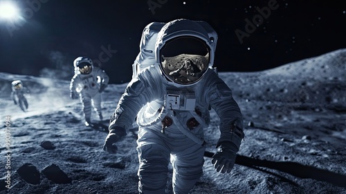 Canvas Print : Astronaut exploring the lunar surface with a group