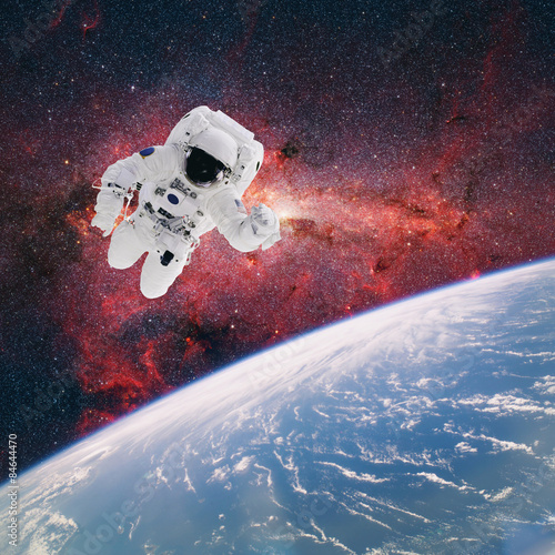 Canvas Prints astronaut in outer space with planet earth as backdrop. elements
