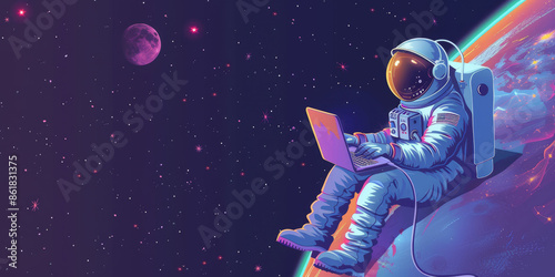 Canvas Prints astronaut in space with a laptop with copy space - Canvas Prints Canvas Prints astronaut in space with a laptop with copy space - Canvas Prints