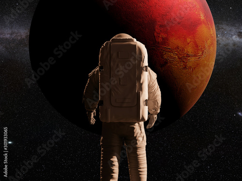 The watermark will not be included on Canvas Print.: Astronaut looking at planet mars