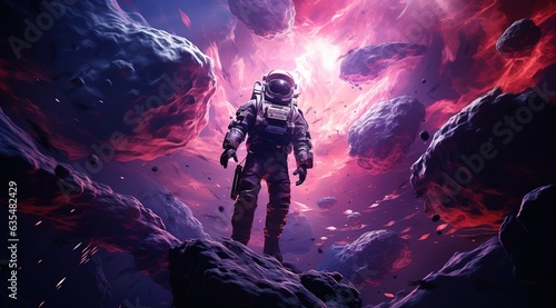 The watermark will not be included on Canvas Print.: Astronaut on rock surface with space background ,astronaut walk on the moon wear cosmosuit - future c
