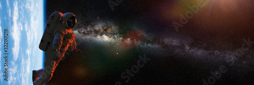 The watermark will not be included on Canvas Print.: Astronaut performing a spacewalk in empty space