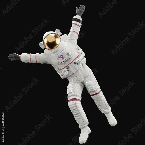 The watermark will not be included on Canvas Print.: Astronaut posing like space parson in-universe 3d render with black background
