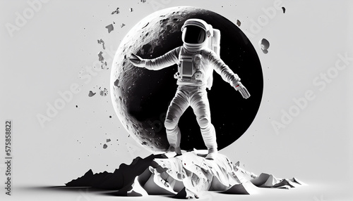 The watermark will not be included on Canvas Print.: Astronaut spaceman illustration space station in outer space - astronauts wear full spacesuits for sp