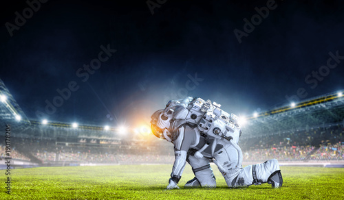 Canvas Prints astronaut starting to run. mixed media