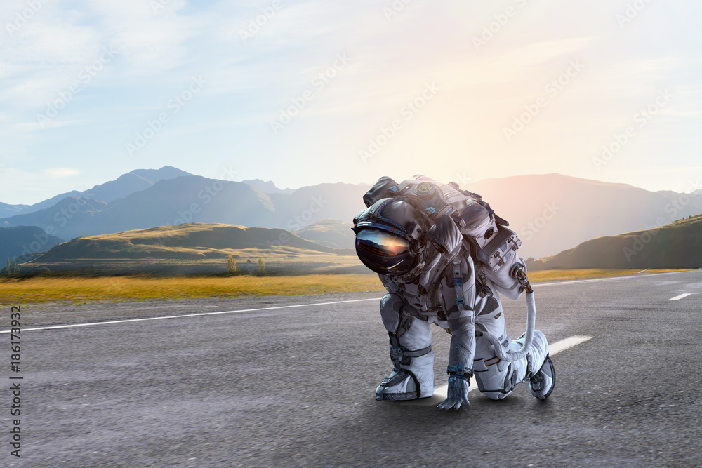 Canvas Prints astronaut starting to run. mixed media