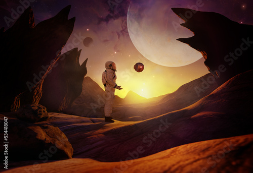 Canvas Prints astronaut talking to drone on alien planet - Canvas Prints Canvas Prints astronaut talking to drone on alien planet - Canvas Prints