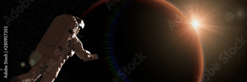 Canvas Prints astronaut watching the sunrise during a space walk in orbit of planet mars