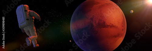 Canvas Prints astronaut waving during a space walk in orbit of planet mars, with moons phobos and deimos - Canvas Prints Canvas Prints astronaut waving during a space walk in orbit of planet mars, with moons phobos and deimos - Canvas Prints