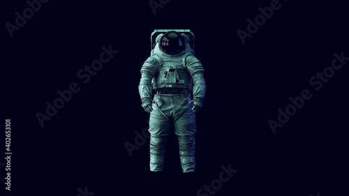 Canvas Prints astronaut with black visor and white spacewalk spacesuit with blue and green moody 80s lighting 3d i