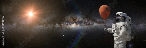 Canvas Prints astronaut with mars balloon in front of the milky way galaxy