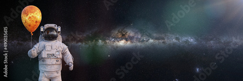 Canvas Prints astronaut with planet venus balloon, background with empty space - Canvas Prints Canvas Prints astronaut with planet venus balloon, background with empty space - Canvas Prints
