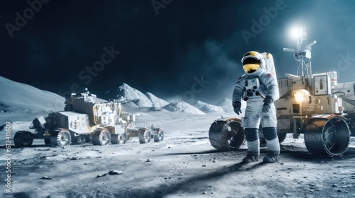 The watermark will not be included on Canvas Print.: Astronauts on the surface of the moon
