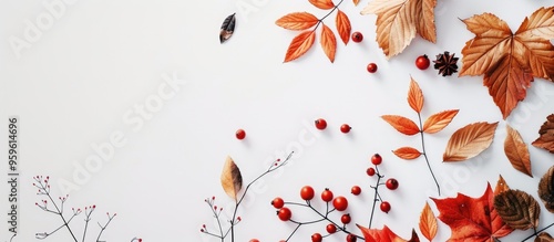 The watermark will not be included on Canvas Print.: Autumn arrangement autumn leaves and berries from various trees and bushes white space available for