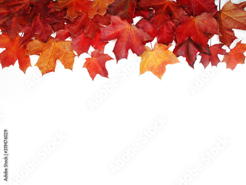 The watermark will not be included on Canvas Print.: Autumn background forest with maple trees and sunny beams
