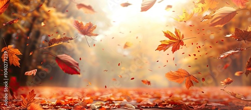 The watermark will not be included on Canvas Print.: Autumn themed scene with falling leaves in the background ideal for a copy space image