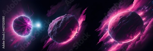 The watermark will not be included on Canvas Print.: Background explosion collision of two planets in the sky (pink)