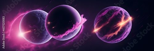 The watermark will not be included on Canvas Print.: Background explosion collision of two planets in the sky (pink)