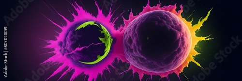 Canvas Prints background explosion collision of two planets in the sky (pink and lime)