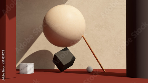 The watermark will not be included on Canvas Print.: Balance - impossible happen geometric shapes abstract composition background - 3d rendering