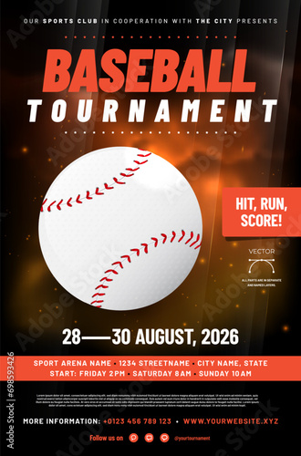 The watermark will not be included on Canvas Print.: Baseball tournament poster template with ball and sample text in separate layer - vector illustratio