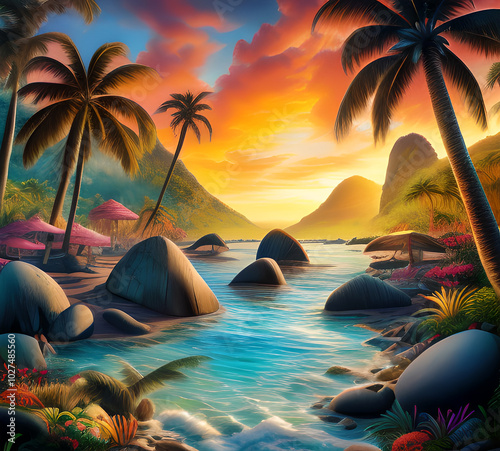 Canvas Prints beautiful exotic beach in bright colors abstract wavy background made with paints.generative ai - Canvas Prints Canvas Prints beautiful exotic beach in bright colors abstract wavy background made with paints.generative ai - Canvas Prints