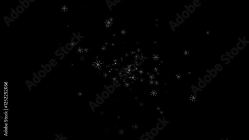 The watermark will not be included on Canvas Print.: Beautiful falling moving white snowflakes particles animation on black abstract background -
