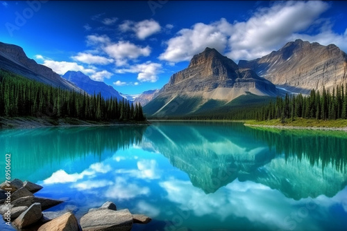 The watermark will not be included on Canvas Print.: Beautiful scenery of lake and mountain generative ai