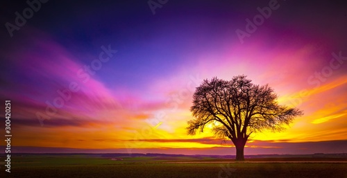 Canvas Prints beautiful tree on a grassy field with the breathtaking colorful sky in the background