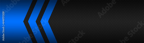 The watermark will not be included on Canvas Print.: Black and blue abstract vector banner with polygonal pattern - template for your header and presentat