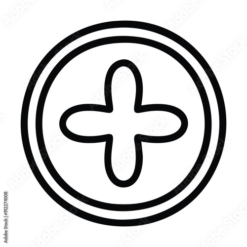 The watermark will not be included on Canvas Print.: Black and white plus symbol with double circle outline - vector illustration