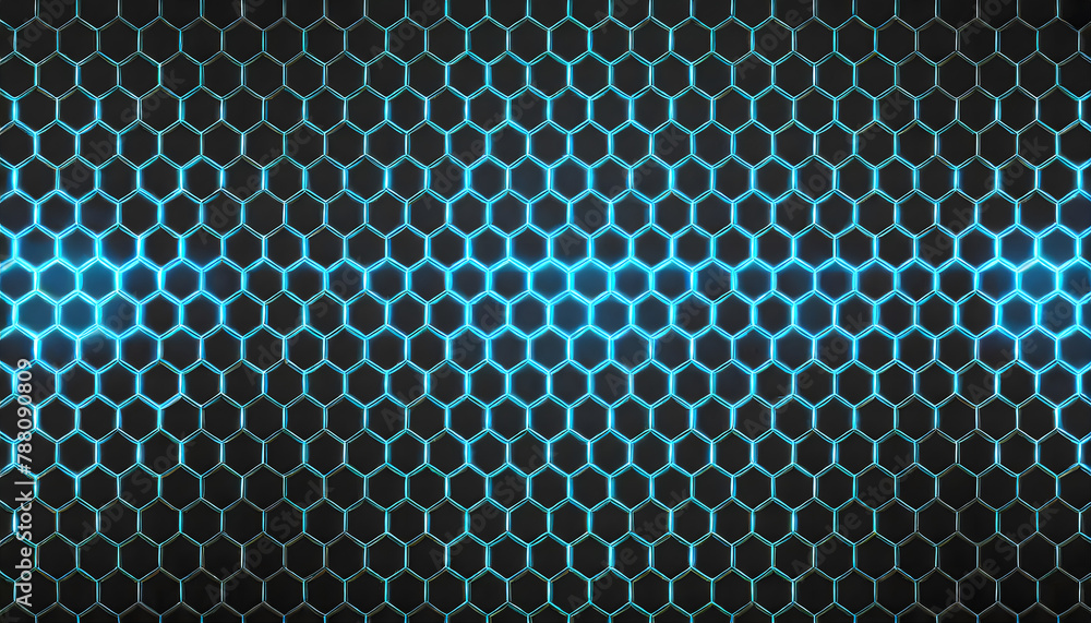 Canvas Prints black background with blue neon hexagon grid. glowing hex background. generative ai.