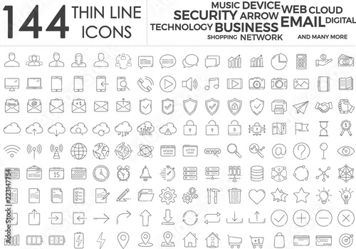 The watermark will not be included on Canvas Print.: Black business thin line icons set on white background