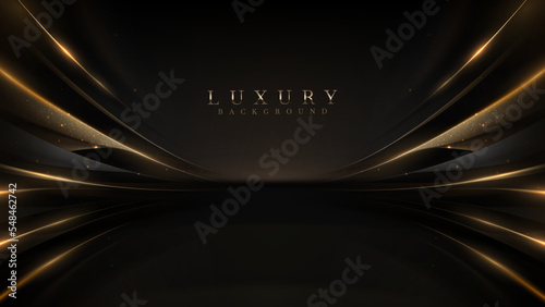 The watermark will not be included on Canvas Print.: Black luxury background with golden line elements and light ray effect decoration and bokeh -