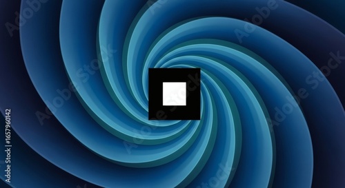 The watermark will not be included on Canvas Print.: Black square with white square inside centered on blue spiral background