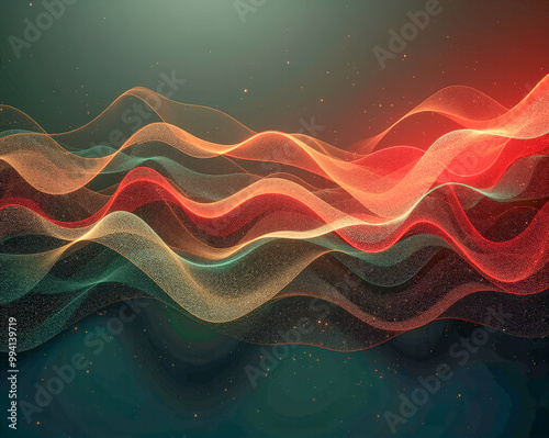 The watermark will not be included on Canvas Print.: Black yellow red and green wave elements abstract background