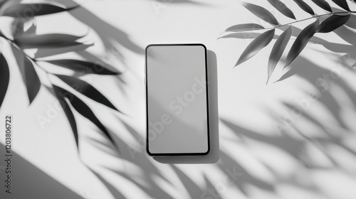 Canvas Print : Blank mockup template of a sleek smartphone on a smooth white background, surrounded by soft shadows