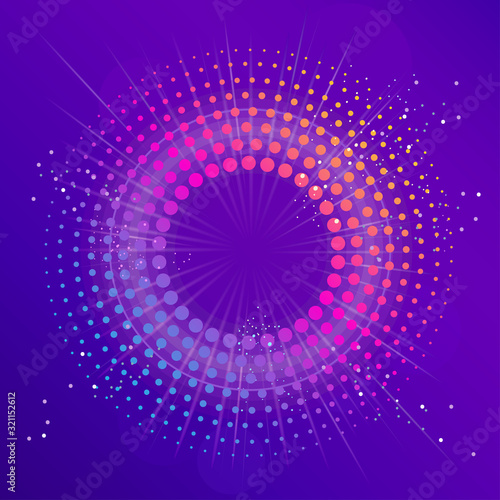 The watermark will not be included on Canvas Print.: Blue abstract disco background with neon glowing circle - vector