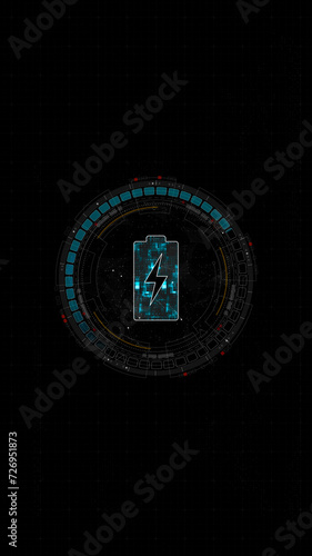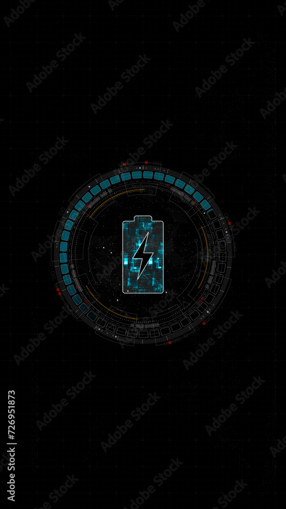 The watermark will not be included on Canvas Print.: Blue digital battery logo and circle futuristic hud elements with power reserve on abstract backgrou