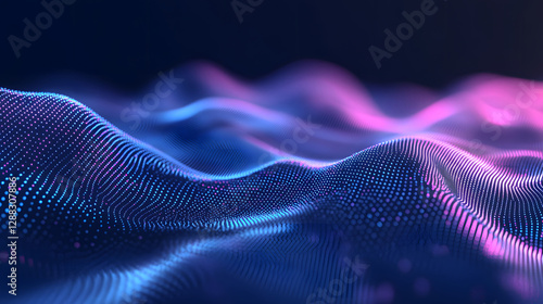 The watermark will not be included on Canvas Print.: Blue dots and lines particles, big data, communication technology science and technology background
