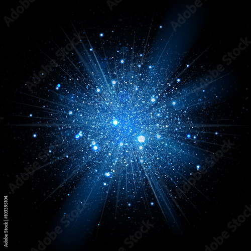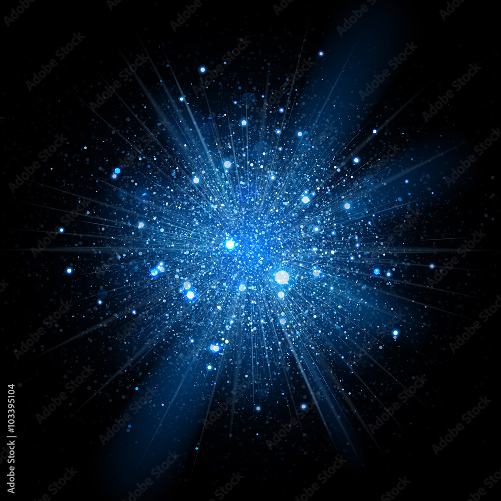 The watermark will not be included on Canvas Print.: Blue glitter particles background effect - sparkling vector