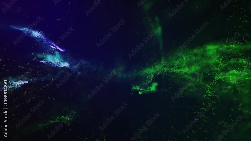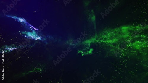The watermark will not be included on Canvas Print.: Blue green abstract particle arms 4k loop features particle arms of blue and green gradient colors g