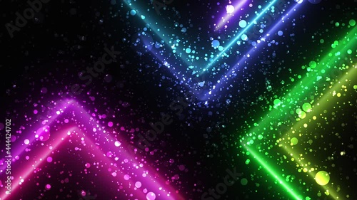 The watermark will not be included on Canvas Print.: Blue red and green neon blur path with particles background
