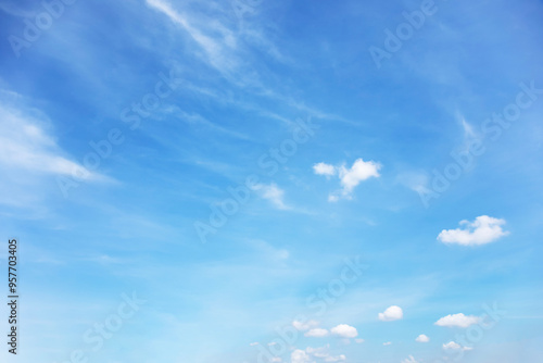 The watermark will not be included on Canvas Print.: Blue sky background and white clouds soft focus, and copy space horizontal shape -