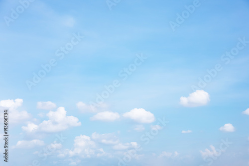 The watermark will not be included on Canvas Print.: Blue sky background and white clouds soft focus, and copy space horizontal shape -